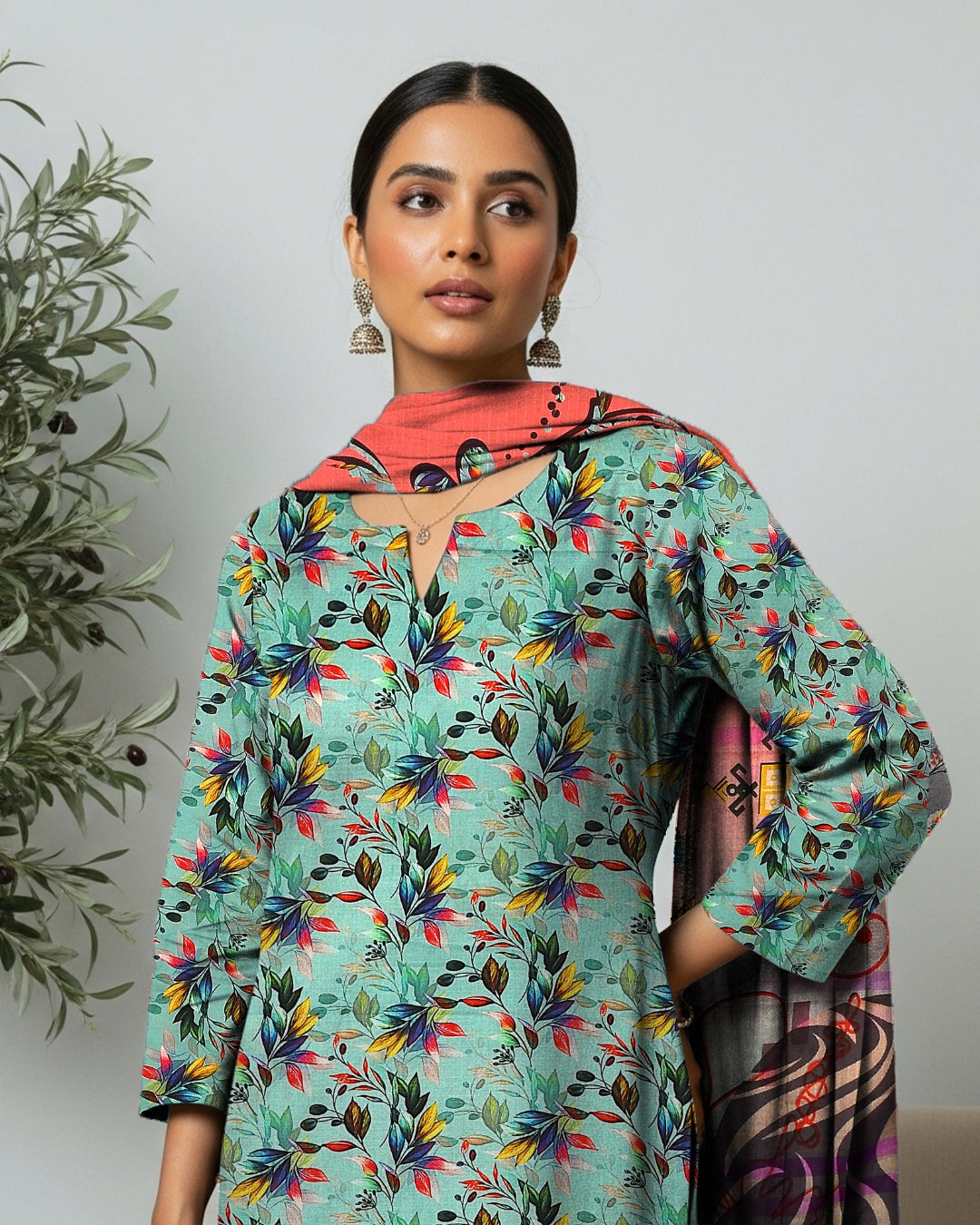 Matching printed dupatta & trouser for a neat look
