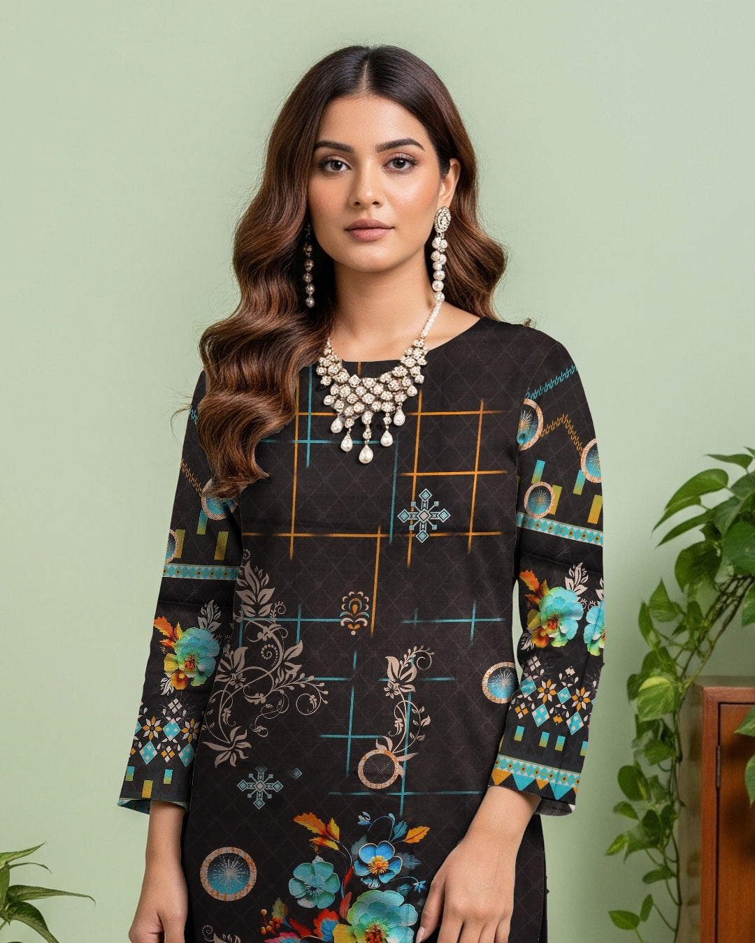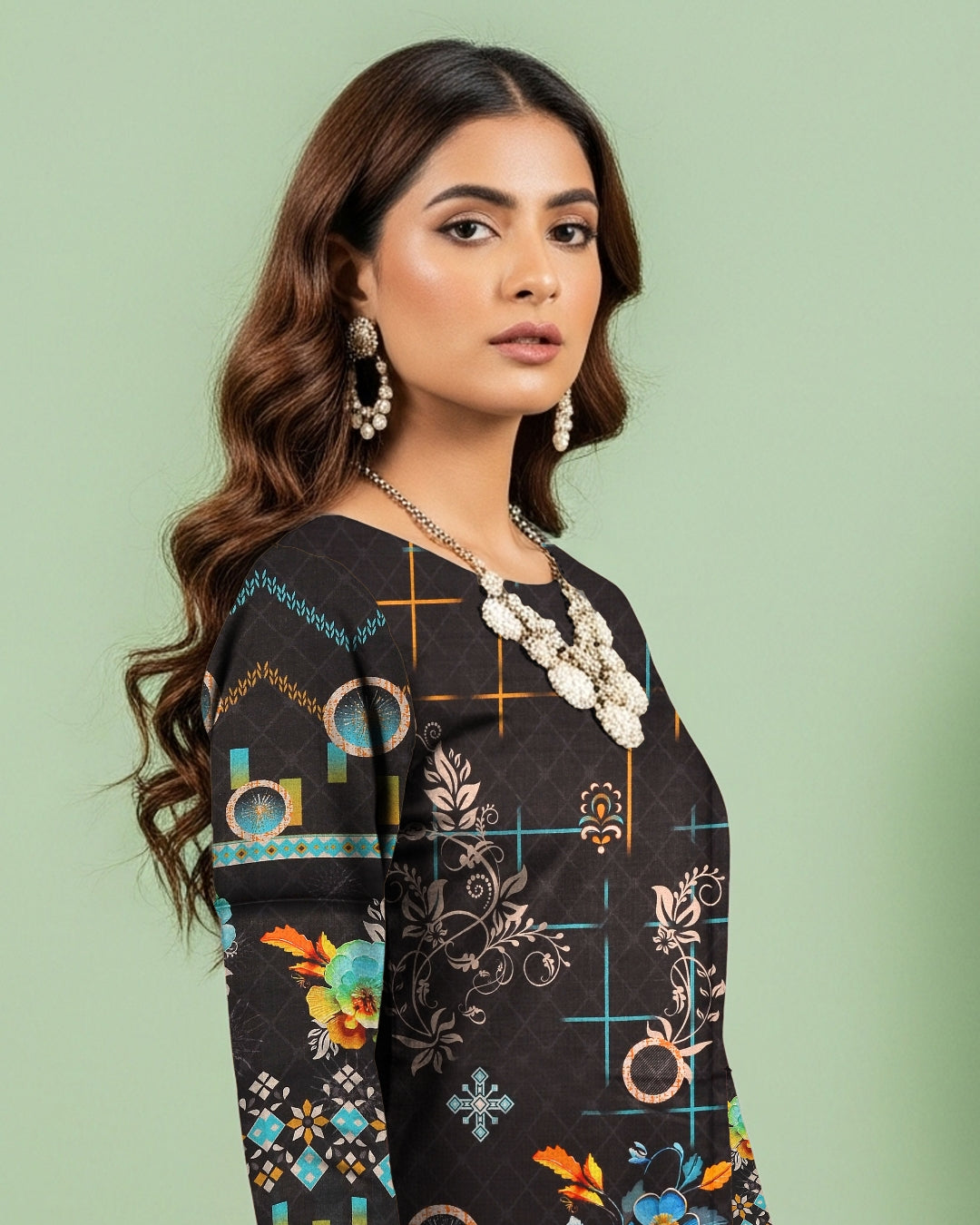 Mocha Classic Linen 3-Piece with Modern Print Dupatta